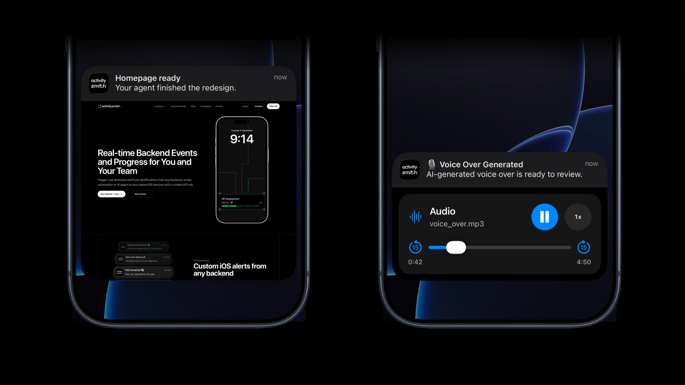 This is a good fit for agent outputs, QA review flows, design previews, generated voice overs, and any backend workflow where the notification should carry the actual result, not just a line of text.